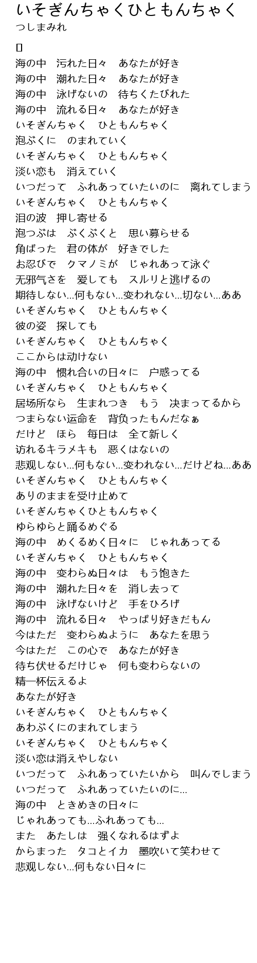 | 海の中 惯れ合いの日々に 户惑ってる | |