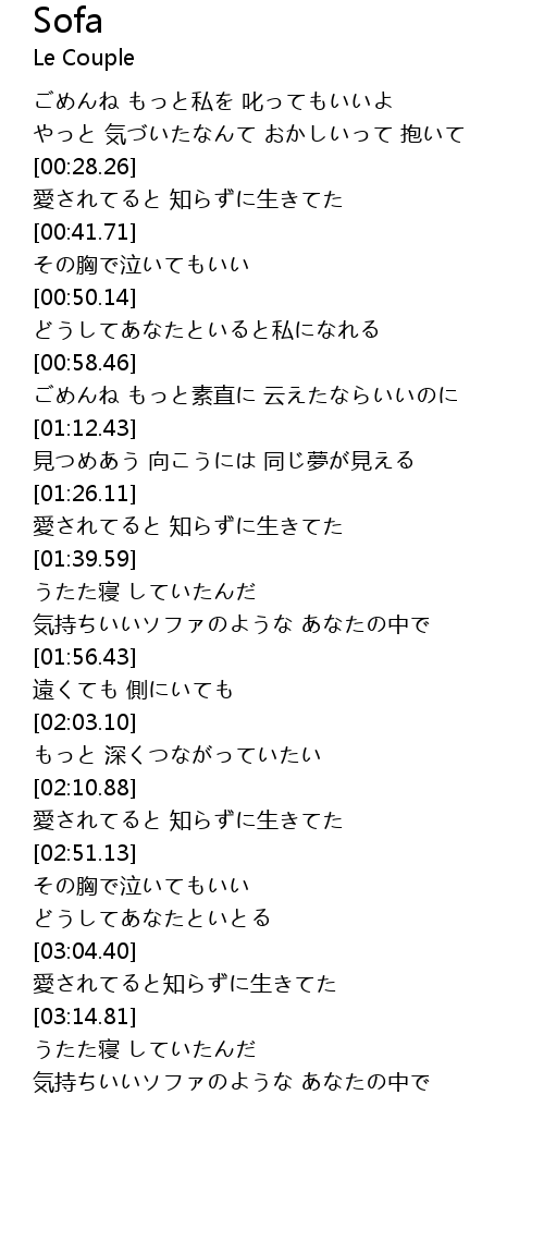 | [03:23.62] | 気持ちいいソファのような あなたの中で |