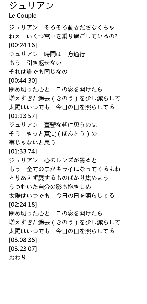 | [01:34.85] | ジュリアン 心のレンズが曇ると |