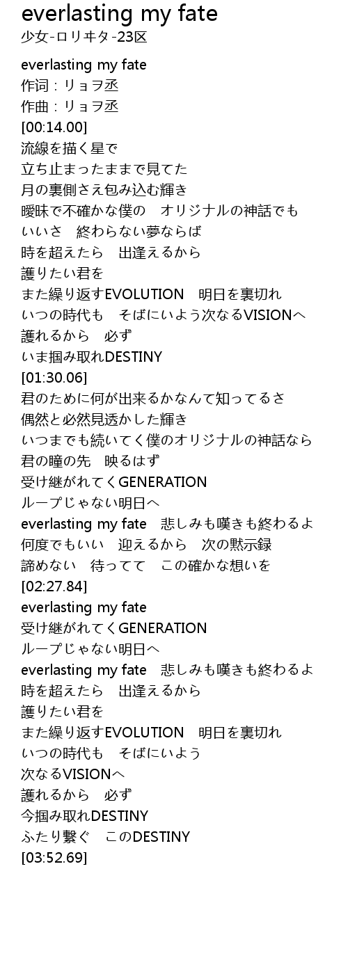 | [02:54.60] | everlasting my fate |