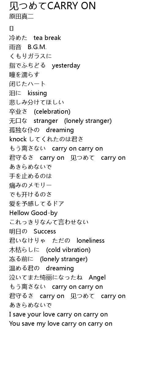 | I save your love carry on carry on | |