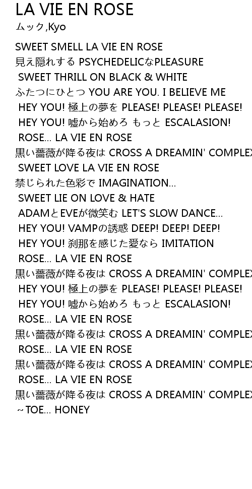 | [01:41.90] | SWEET LOVE LA VIE EN ROSE |
