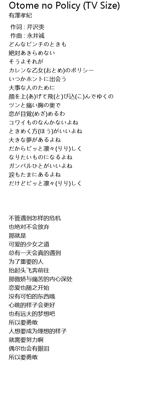 | [00:21.47] | カレンな乙女(おとめ)のポリシー |