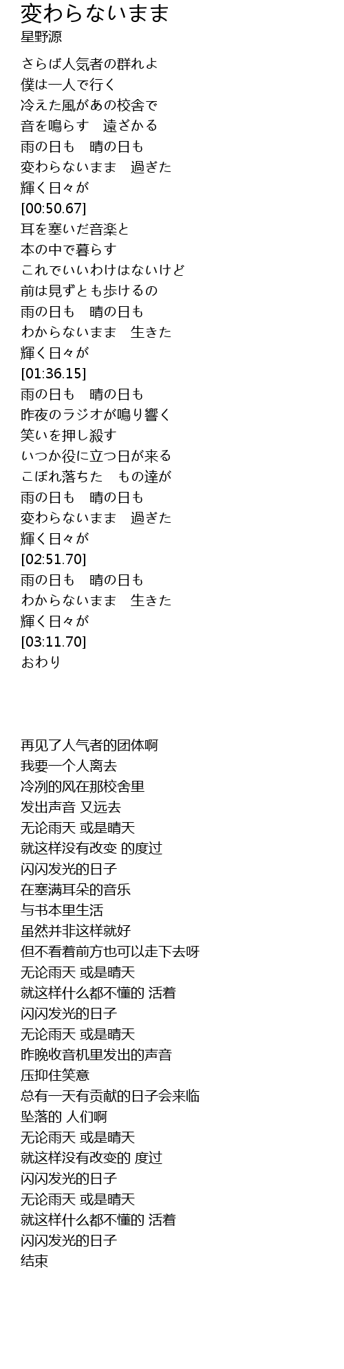 変わらないまま 過ぎた |