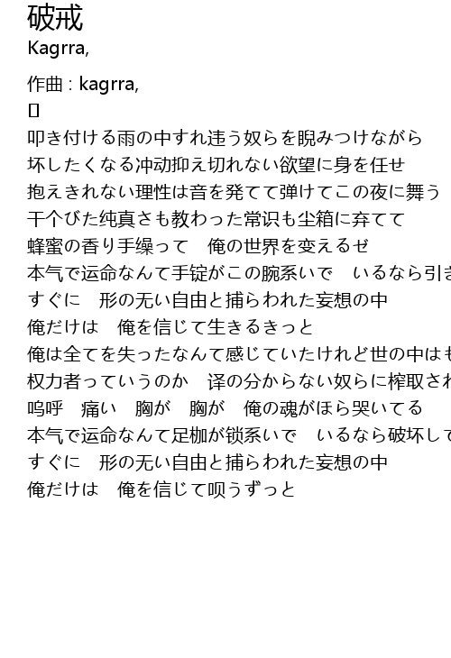 | 呜呼 痛い 胸が 胸が 俺の魂がほら哭いてる | |