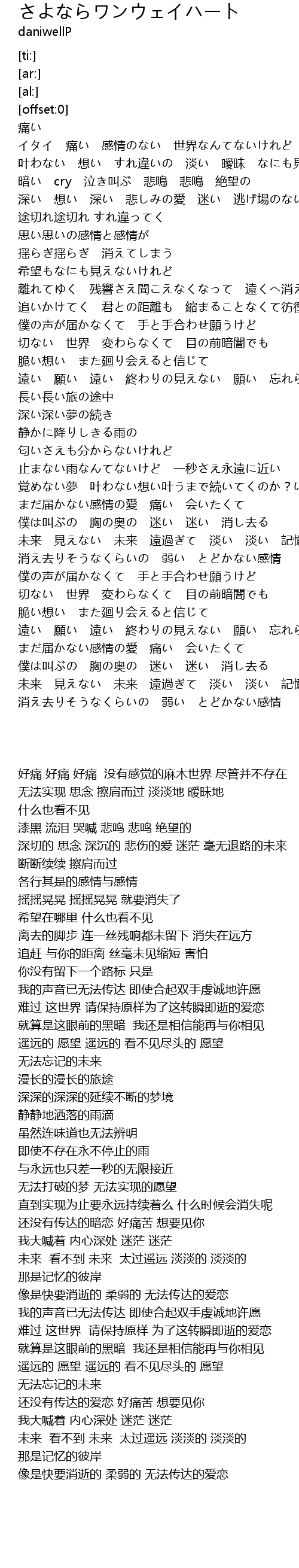 | [00:16.63] | 痛い イタイ 痛い 感情のない 世界なんてないけれど |