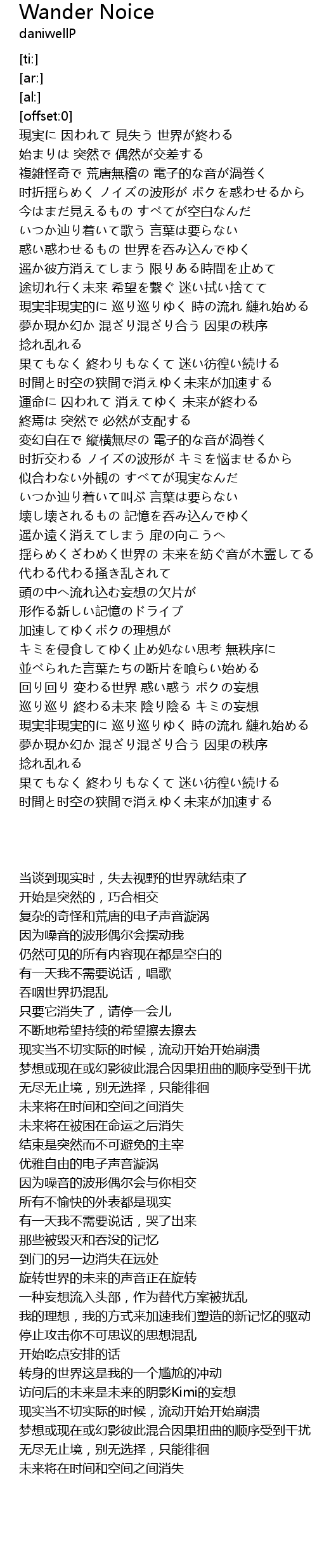 | [03:24.84] | 时間と时空の狭間で消えゆく未来が加速する |