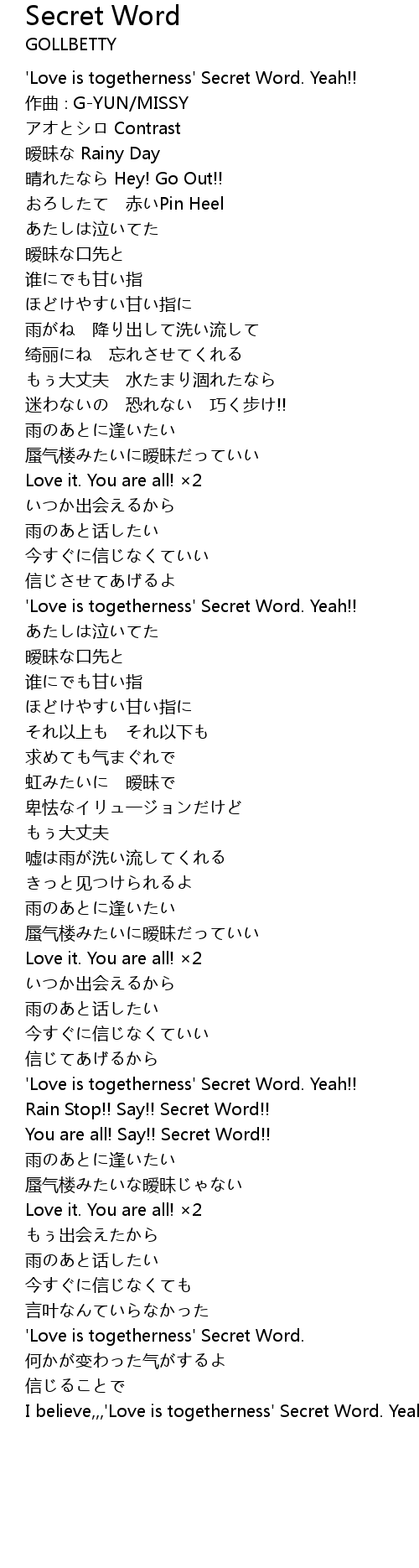 | ' Love is togetherness' Secret Word. Yeah!! | |