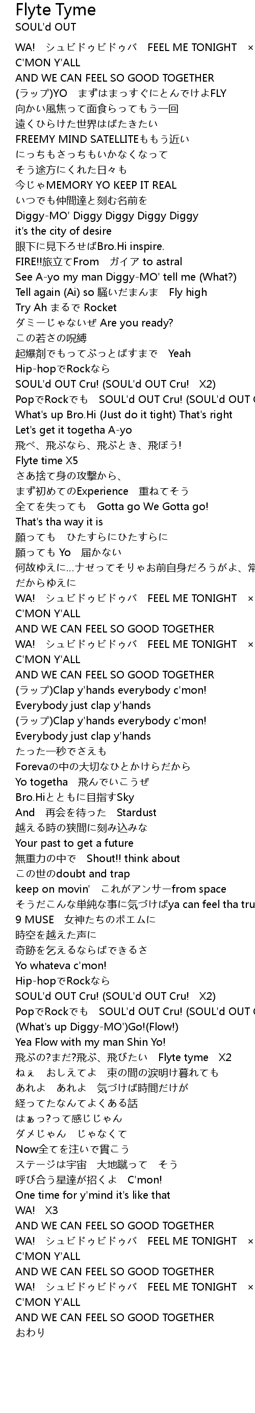 | [03:31.82] | SOUL'd OUT Cru! (SOUL'd OUT Cru! X2) |