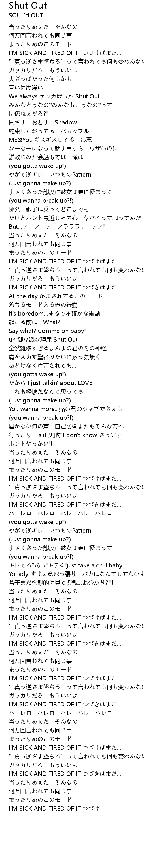 | [00:38.65] | We always ケンカばっか Shut Out |