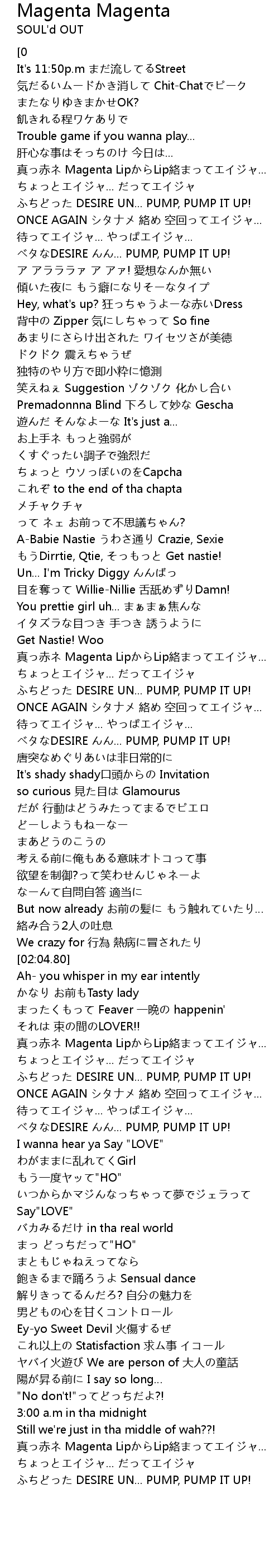 | [02:28.81] | ベタなDESIRE んん... PUMP, PUMP IT UP! |