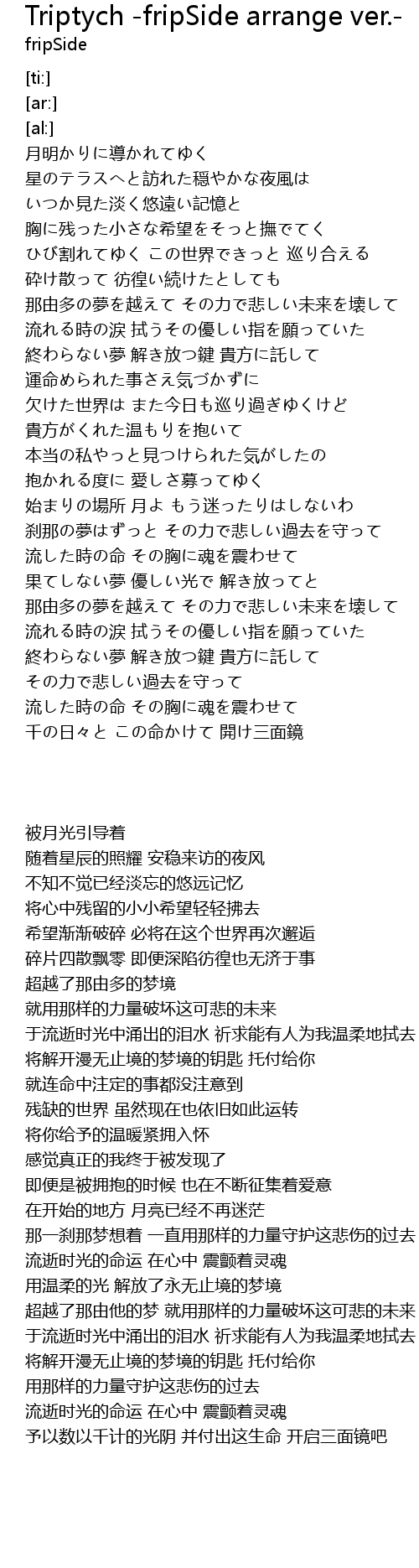 | [03:34.29] | 那由多の夢を越えて その力で悲しい未来を壊して |