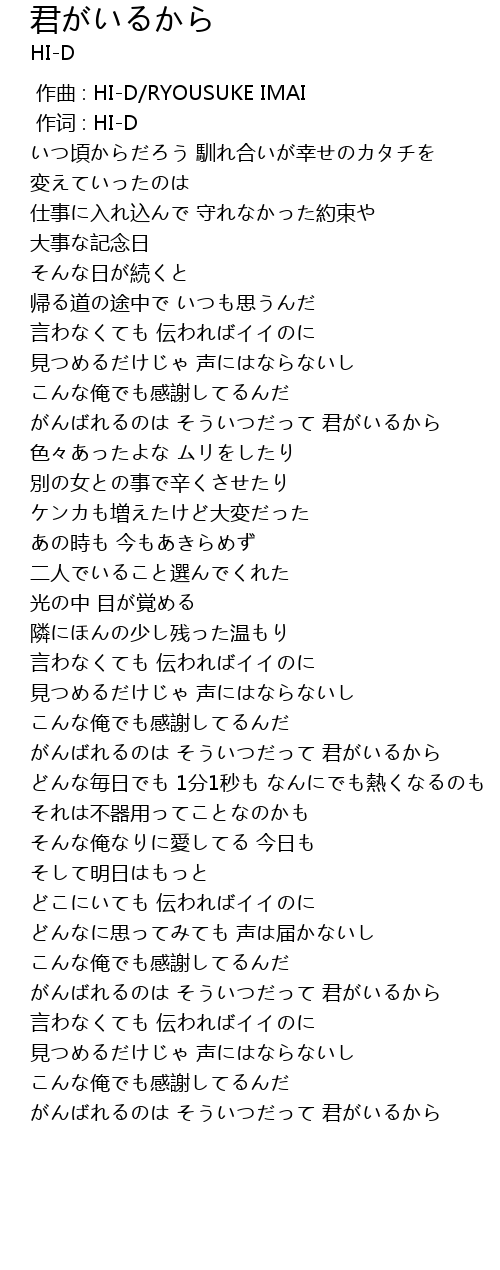 | Song | 君がいるから |