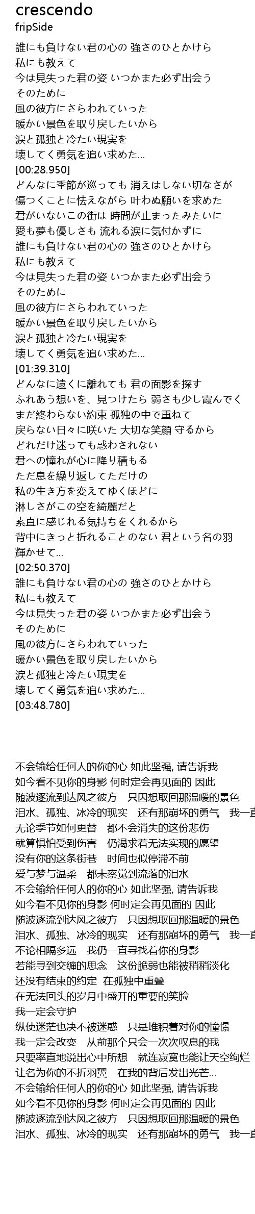 | [03:39.920] | 涙と孤独と冷たい現実を 壊してく勇気を追い求めた... |