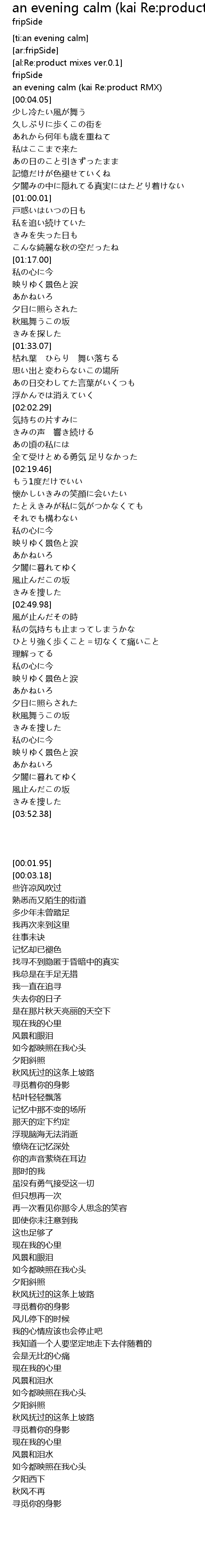 | [00:03.18] | an evening calm (kai Re:product RMX) |