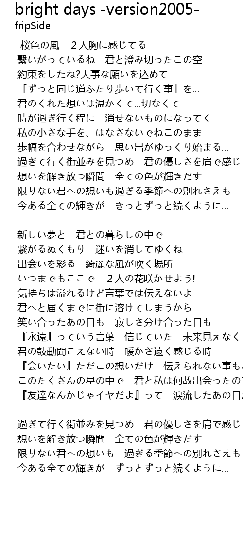| Song | bright days -version2005- |