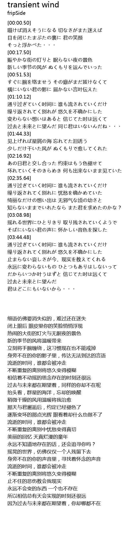 | [03:44.59] | 通り过ぎていく时间に 谁も流されていくだけ |
