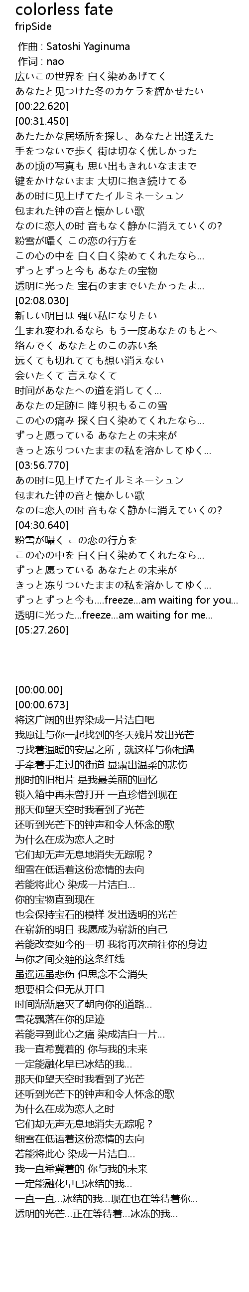 | [05:17.110] | 透明に光った...freeze...am waiting for me... |