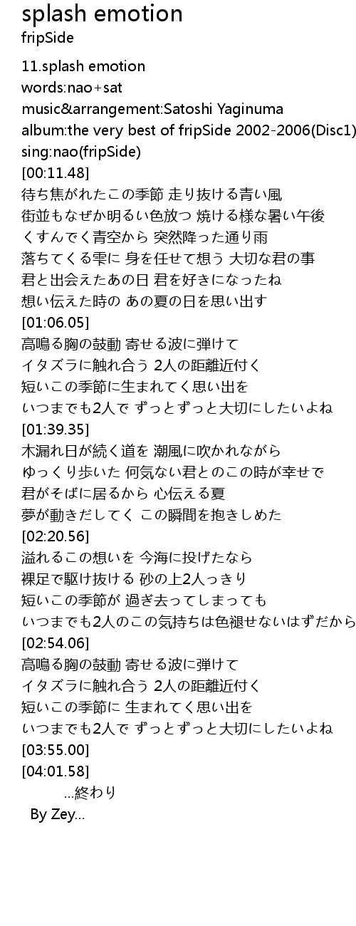 | [00:07.76] | album: the very best of fripSide 20022006 Disc1 |
