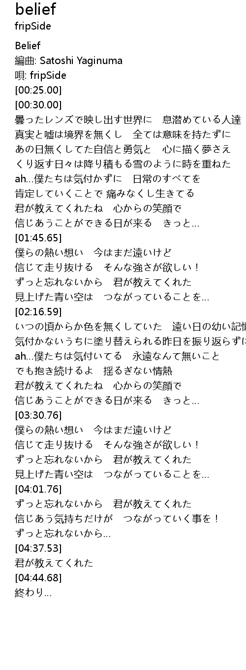 | [03:39.63] | 信じて走り抜ける そんな強さが欲しい! |