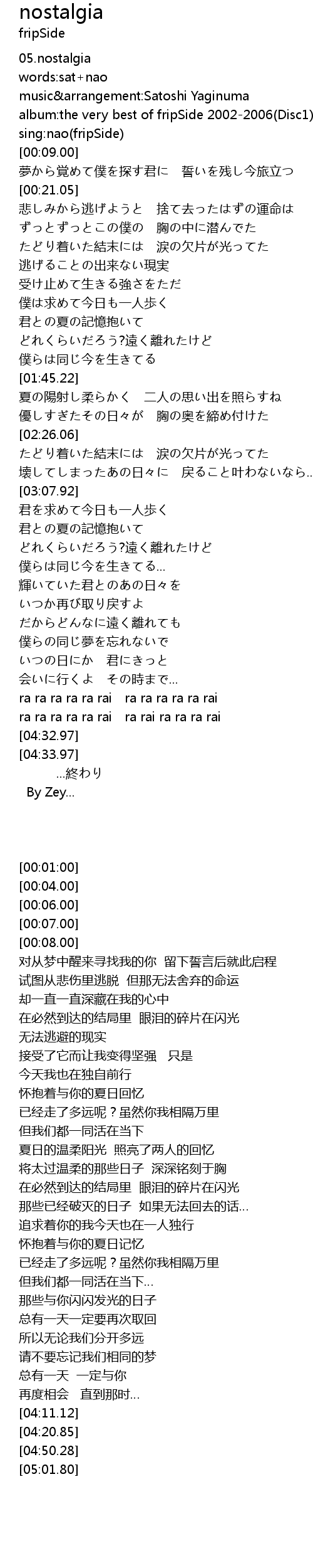 | [00:07.00] | album:the very best of fripSide 2002-2006(Disc1) |