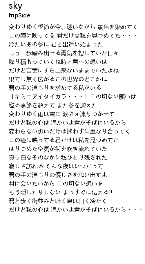 | だけど私の心は 温かいよ君がそばにいるから | |
