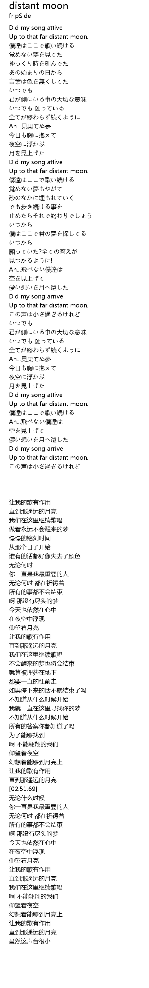 | [02:43.47] | 儚い想いを月へ還した |