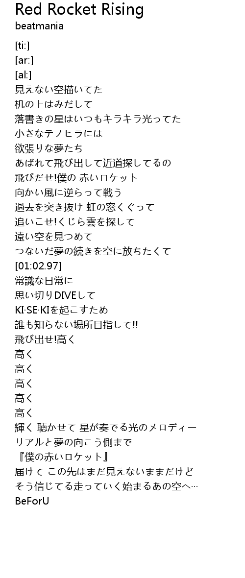 | [00:34.37] | 飛びだせ!僕の 赤いロケット |