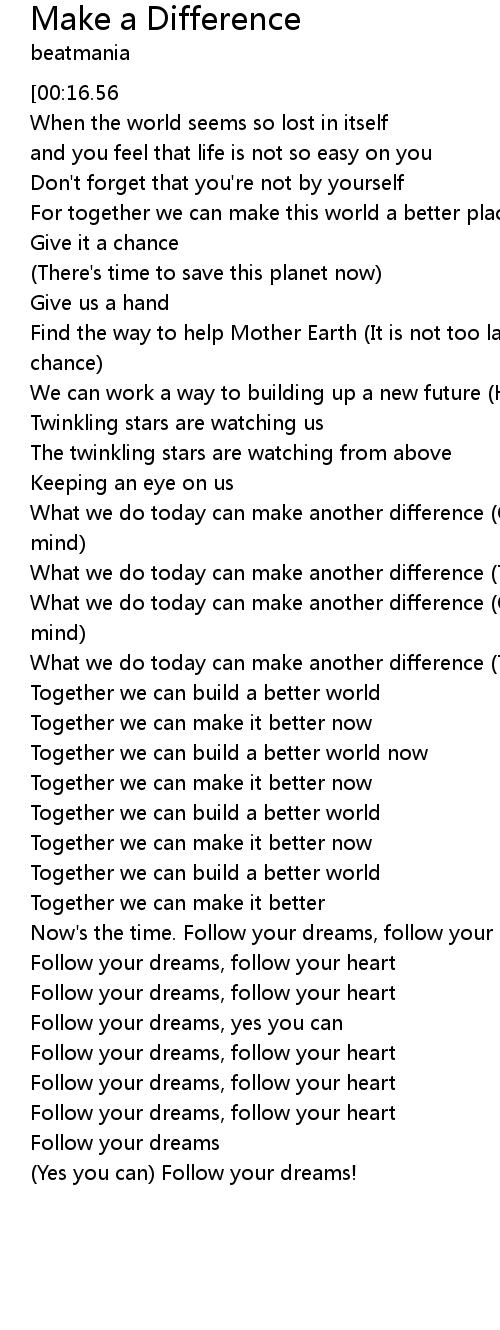 What we do today can make another difference (Open your heart and your mind) |
