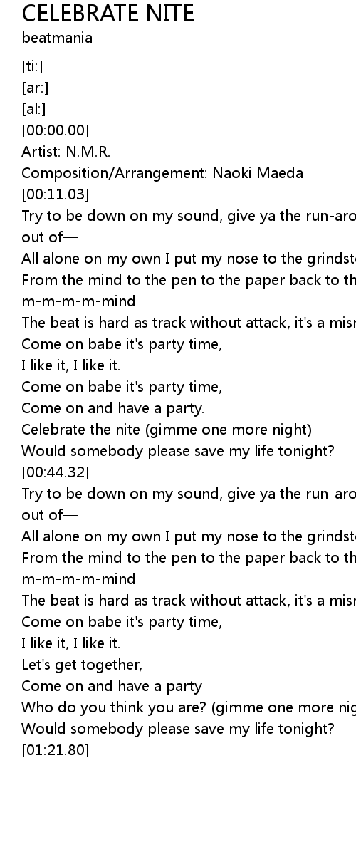 | [00:33.60] | Celebrate the nite (gimme one more night) |