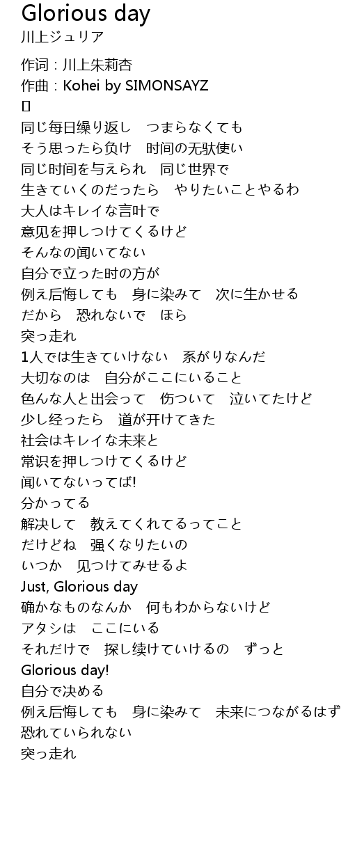 | Just, Glorious day | |