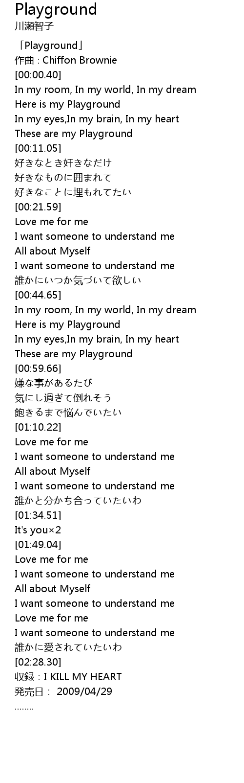 | [02:29.30] | shou lu: I KILL MY HEART |