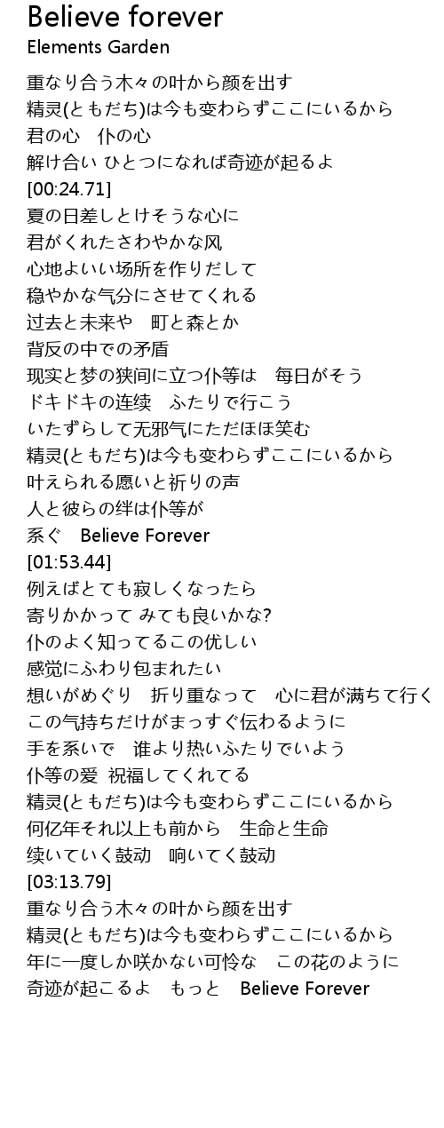 | [03:56.32] | 奇迹が起こるよ もっと Believe Forever |