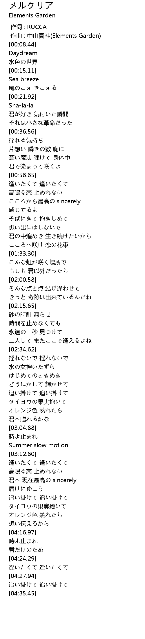| [00:01.000] | zuo qu : zhong shan zhen dou Elements Garden |