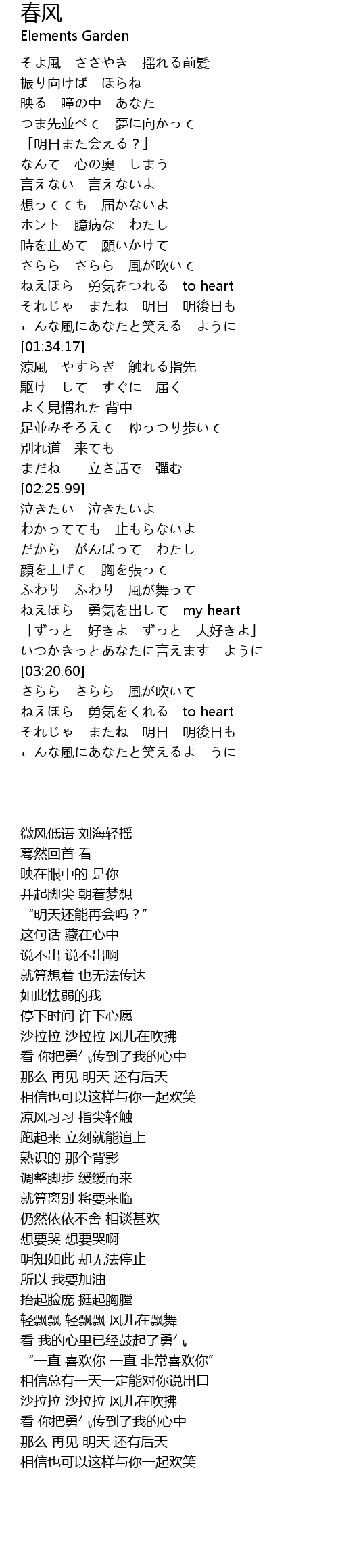 | [00:00.98] | そよ風 ささやき 揺れる前髪 |