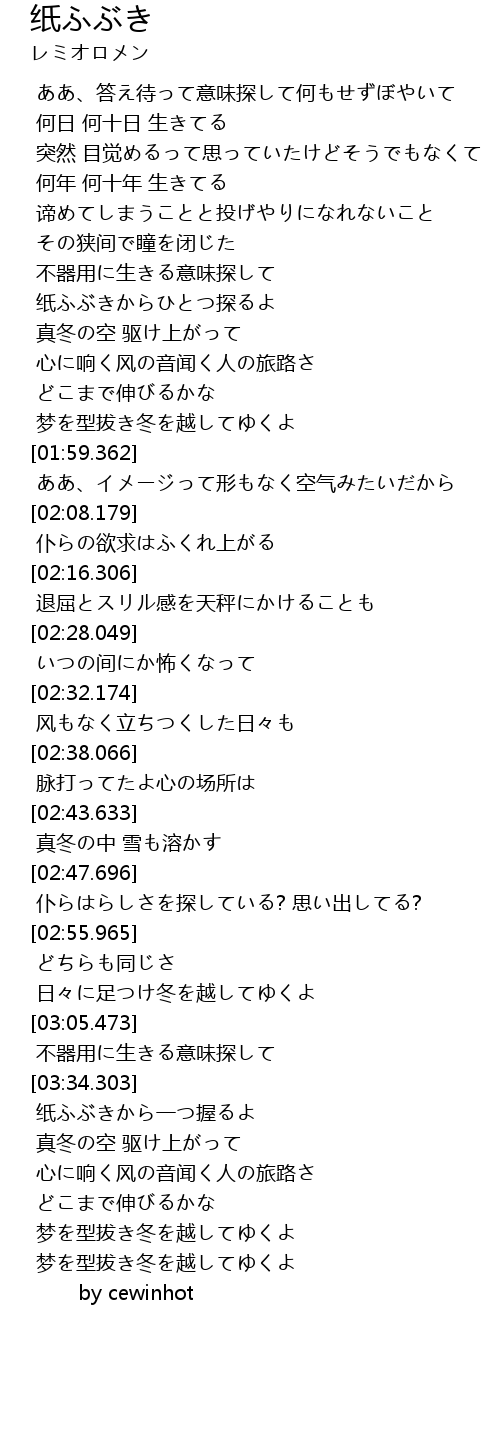 | [01:48.268] | 梦を型拔き冬を越してゆくよ |