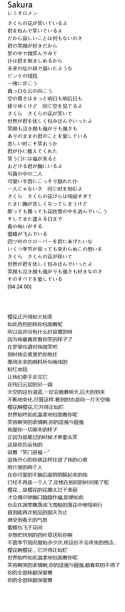 | [00:27.00] | さくらの花が笑いているよ |