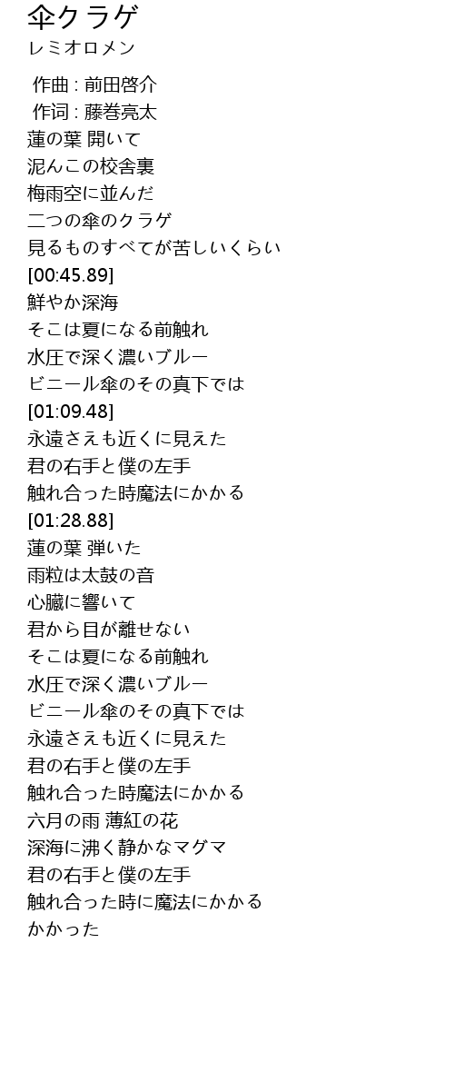 | [00:01.00] | 作词 : 藤巻亮太 |