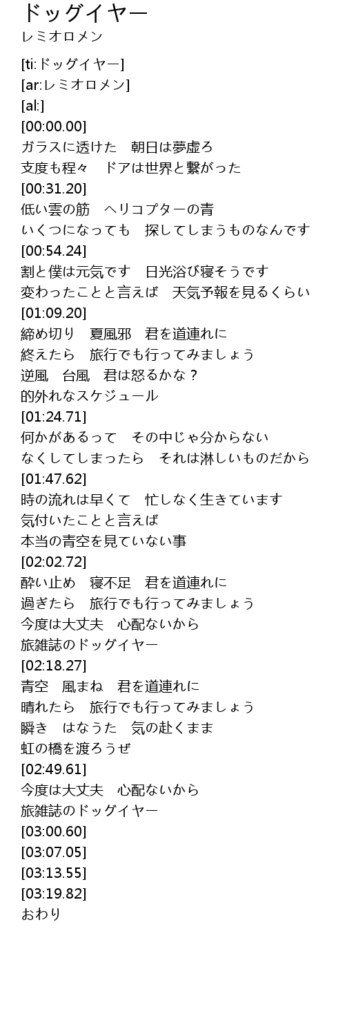 | [02:53.71] | 旅雑誌のドッグイヤー |