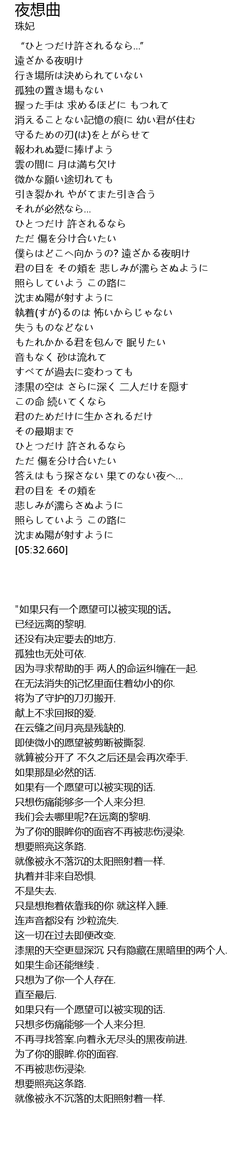 | [00:00.000] | “ひとつだけ許されるなら...” |