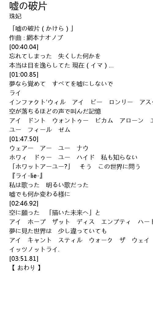 | [00:01.04] | 「嘘の破片(かけら)」 |