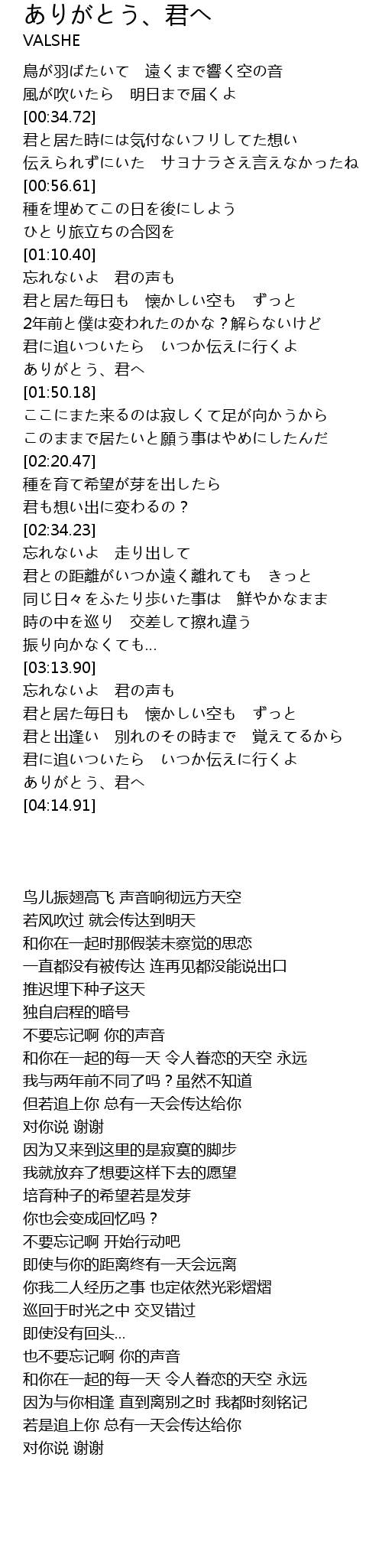 | [04:08.47] | ありがとう、君へ |