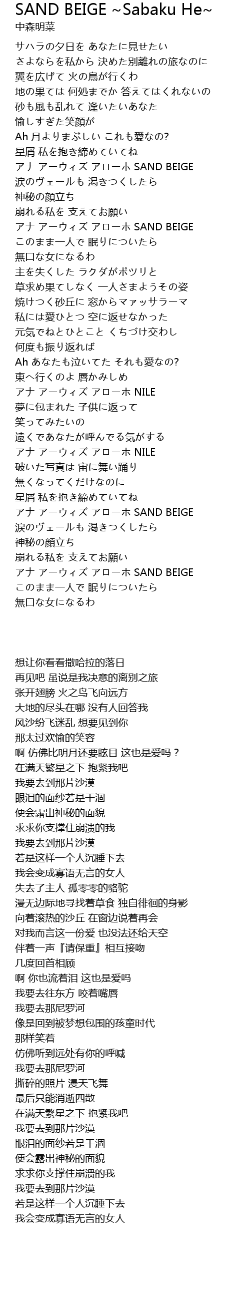 | [00:16.91] | サハラの夕日を あなたに見せたい |