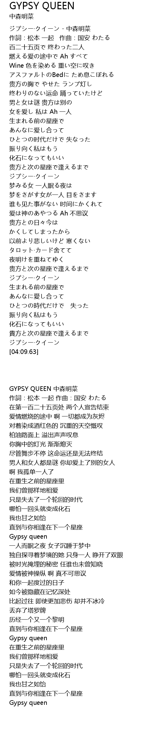 | [03:59.83] | ジプシー·クイーン |