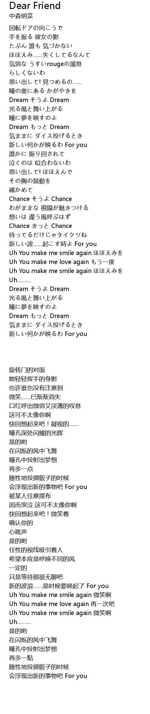 | [03:07.000] | Uh You make me smile again ほほえみを |