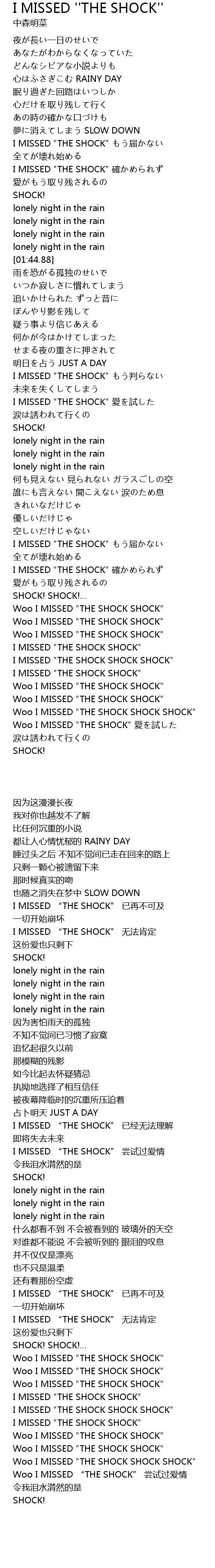 | [03:55.98] | Woo I MISSED " THE SHOCK" ai shi |