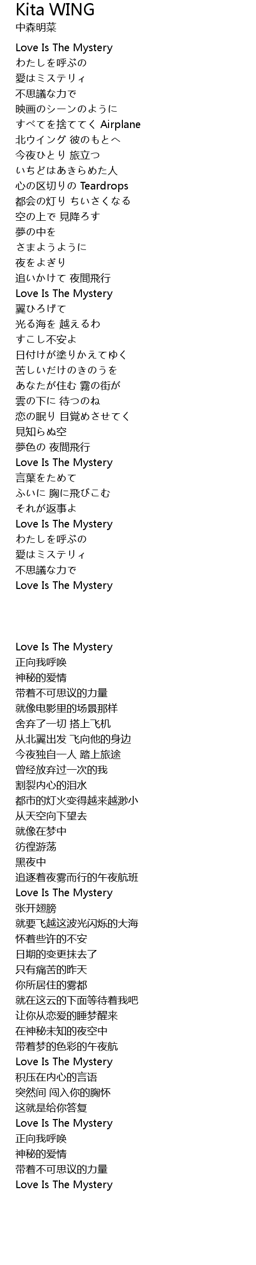 | [01:53.40] | Love Is The Mystery |