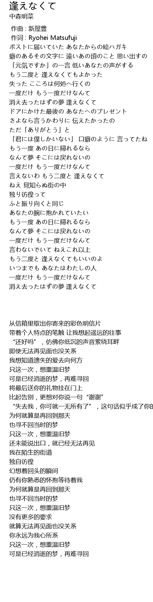 | [04:31.96] | 消え去ったはずの夢 逢えなくて |