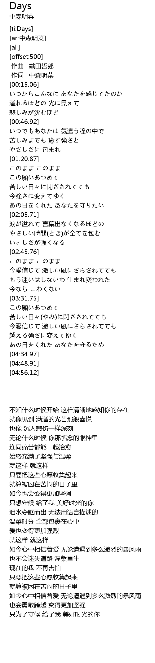 | [03:51.56] | 苦しい日々(やみ)に閉ざされてても |