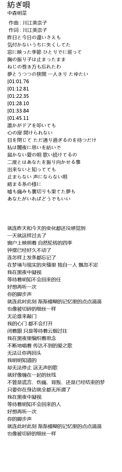 | [04:28.29][01:45.11] | qiān qiè mì yàng |
